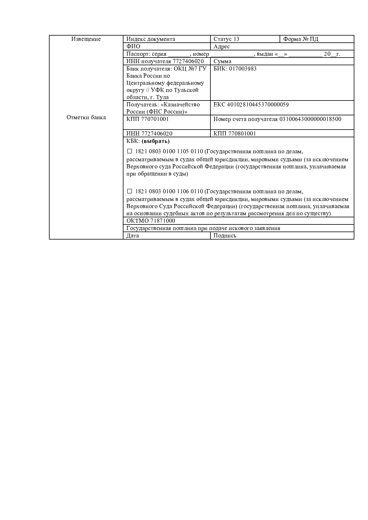 ОКЦ №7 ГУ Банка России по Центральному федеральному округу // УФК по Тульской области, г. Тула